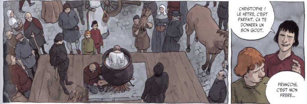 Marc – De la grande BD adaptée d’un roman de Jean Teulé. Rare d’avoir une bande dessinée sur cette période qui ne soit pas caricaturale, ésotérique ou appartenant aux contes et légendes. Il faut dire que la vie de François Villon, ce qu’on en sait, l’histoire narrée par Jean Teulé, nous emmène dans un moyen âge crasseux, ignoble, féodal, hyper-religieux, où la vie d’un homme du commun n’a aucune valeur. Villon le poète, Villon le coquillard, tente de survivre dans ce monde cruel quitte à devenir lui même un monstre. Sa poésie le sauve, mais son impertinence et son mépris des puissants le précipitent dans une vie pleine d’incertitudes. Scénario implacable, personnages pittoresques, ambiances glauques, dessins magnifiques font de cette bande dessinée une véritable réussite. Les textes de Villon en tête de chapitre sont émouvants et donnent envie de relire ses poèmes dans ce vieux français parfois difficile à comprendre mais si beau à écouter.