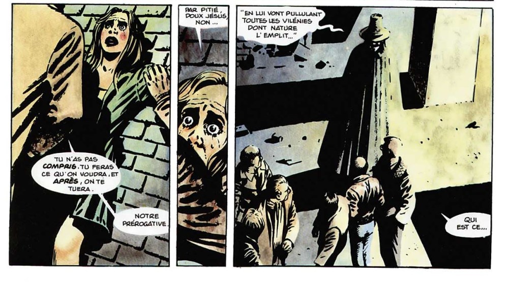 Marc – Cette bande dessinée signée Moore et Lloyd est devenue une oeuvre incontournable du 9ème art, une révolution au pays des comics. Le scénario de Moore est particulièrement efficace. Si Watchmen est considérée comme son chef d’oeuvre, V comme Vendetta le confirme comme un scénariste aux œuvres fortes, politiques et philosophiques. La bande dessinée raconte l’histoire d’un justicier fou au passé traumatisé, se dissimulant sous un masque souriant aux yeux vides qui veut réduire Londres en poussières pour résister à la dictature en place. Si le dessin de Lloyd est très « pulp » et comics des années 70 sur papier journal, l’ensemble convient bien aux récits de Moore, pas de fioriture, mais des expressions, des cadrages assez cinématographiques, de l’efficacité. On lui doit aussi le fameux masque de V repris aujourd’hui par les Anonymous.