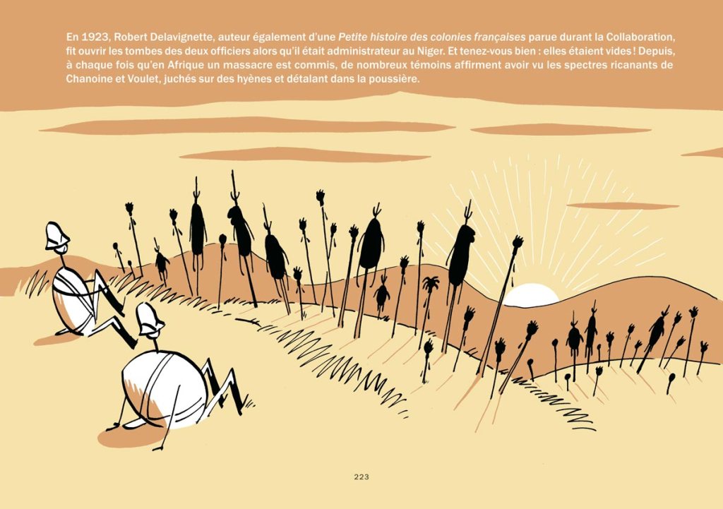 Soyons clair, c’est une série d’humour pour apprendre et s’interroger sur notre histoire en dehors de nos frontières européennes. L’humour est décapant, mais très jouissif ! Comme tous les albums de ce duo de choc, la forme est toujours un peu la même, des lignes de textes qui racontent l’histoire avec force anecdotes et pas mal de recul sur l’histoire dite officielle, un esprit caustique admirable, et des commentaires acerbes sur les grands personnages (Je me répète un peu !). Le dessin de Otto T. est sublime de simplicité, narrant par l’image ce que le discours ne dit pas. Un massacre est un massacre et une tête coupée ne repousse pas !