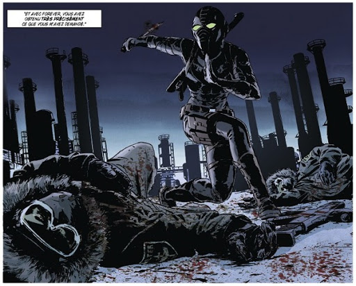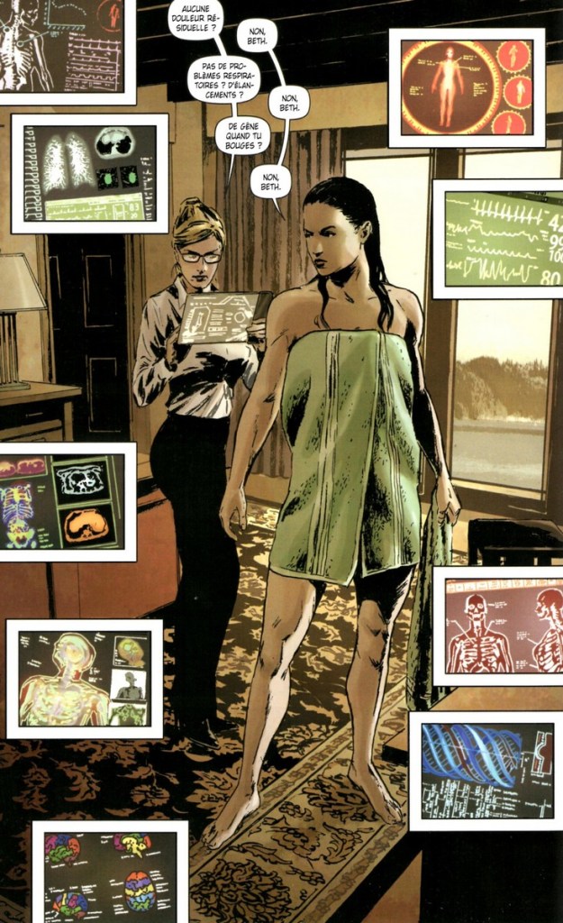 C’est violent à souhait, mais qu’est que cette bd est addictive ! Le scénariste Greg Rucka propose une série bien construite et rondement menée. Ce monde apocalyptique où seules de grandes familles se partagent ce qui reste des terres habitables est terriblement bien décrit, terriblement bien mis en scène. Il faut lire la série (au moins les 5 premiers volumes de l’édition française et le 6ème opus) pour appréhender ce monde complexe, les luttes de pouvoirs au sein des familles, le monde violent des lazarus, les tensions entre les différentes castes, les enjeux politiques et géopolitiques. Le dessin de Michael Lark est également très efficace, sa technique utilisant photos et maquettes redessinées donne du réalisme à cette histoire de science fiction. Les scènes d’action sont bien découpées et explosives.