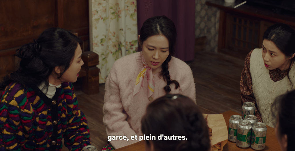 Petit moment de pur bonheur dans la série « Crash landing on you ». L’héroïne se trouve dans un village de Corée du nord, elle se trouve avec les femmes du village qui l’ont adoptée, et ont vu débarquer dans la maison du capitaine une fille de la ville qui dit être sa fiancée.