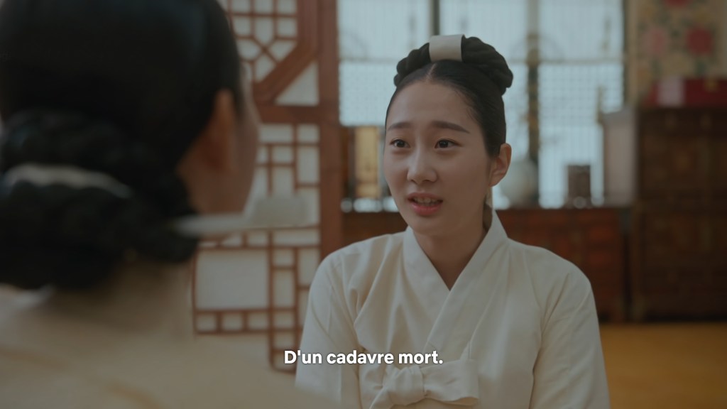 K Drama, Mise en images & découpage Mr Queen : Un cadavre mort ! Publié par Marc E. Louvat le octobre 13, 2024novembre 22, 2024 L’une des scènes les plus « humour noir » de Mr Queen. Kim So Yong (Shin Hye-sun) sait que le roi est toujours vivant, mais veut paraître faible auprès des conspirateurs. Elle demande alors à sa servante, de la maquiller en conséquence. Partager : Cliquer pour partager sur X(ouvre dans une nouvelle fenêtre) X Cliquez pour partager sur Facebook(ouvre dans une nouvelle fenêtre) Facebook J’aime chargement… Similaire