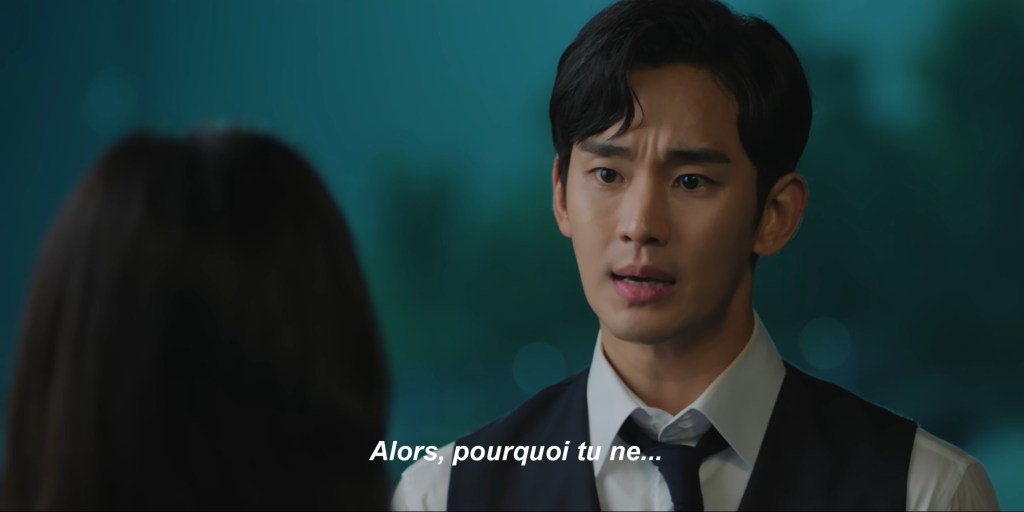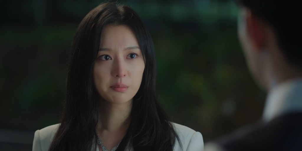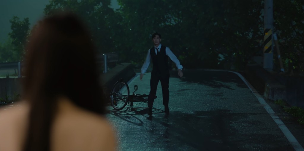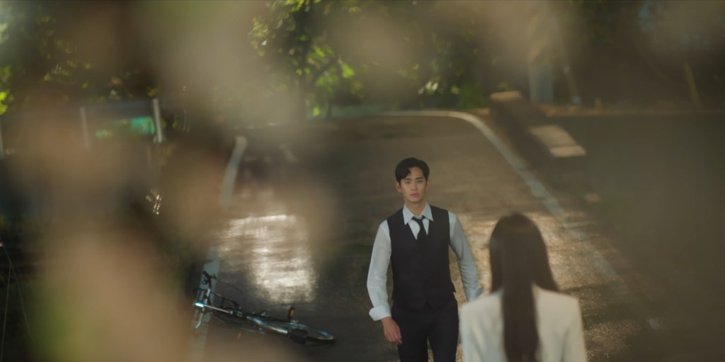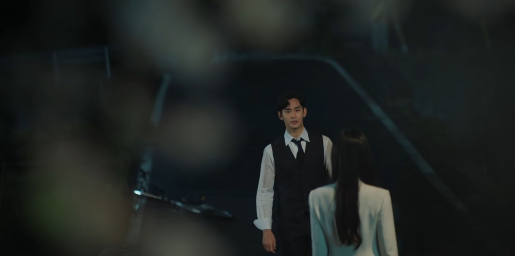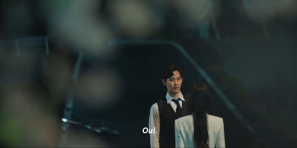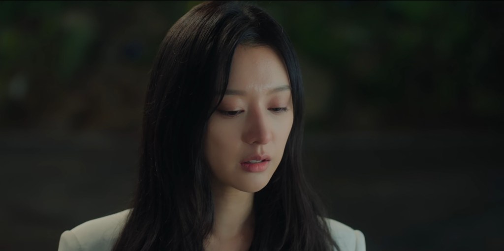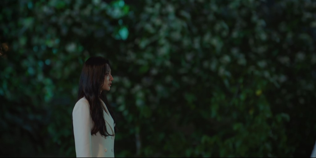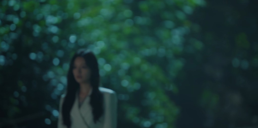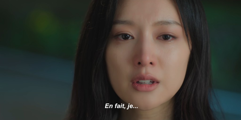 L’utilisation de la lumière et des ombres symbolise la lutte de Hae-in avec sa propre vulnérabilité, son déni de la maladie, et la distance émotionnelle entre elle et Hyun-woo. Cette scène met en avant la complexité des émotions des personnages, entre confrontation et vulnérabilité, et fait écho à leur relation, où chaque geste et chaque regard reflète leurs dilemmes intérieurs.