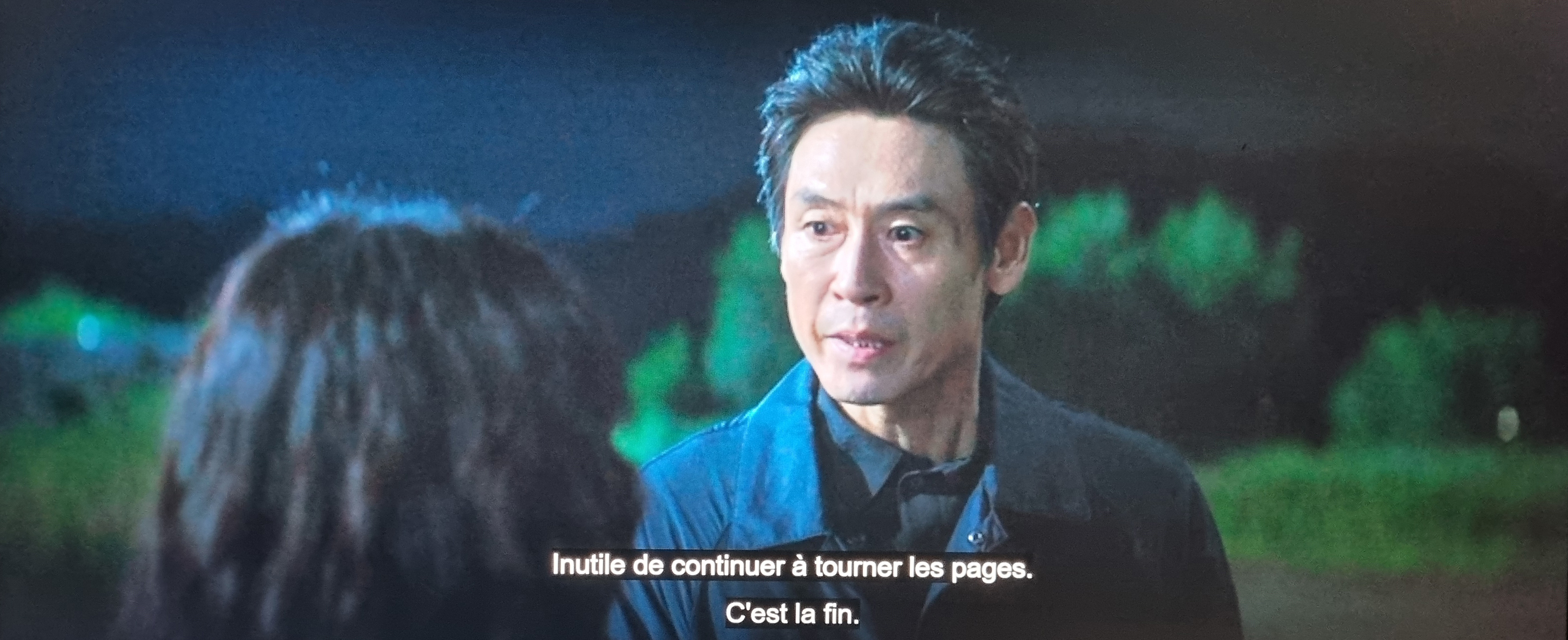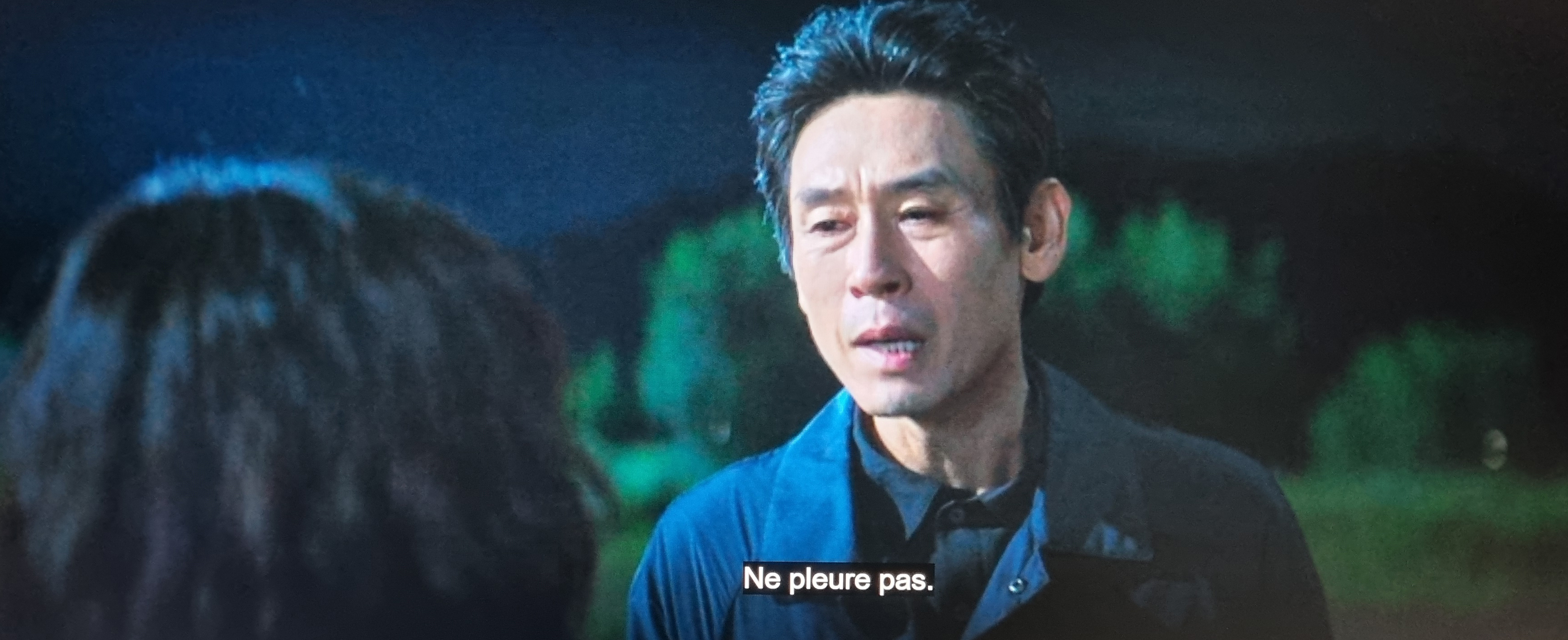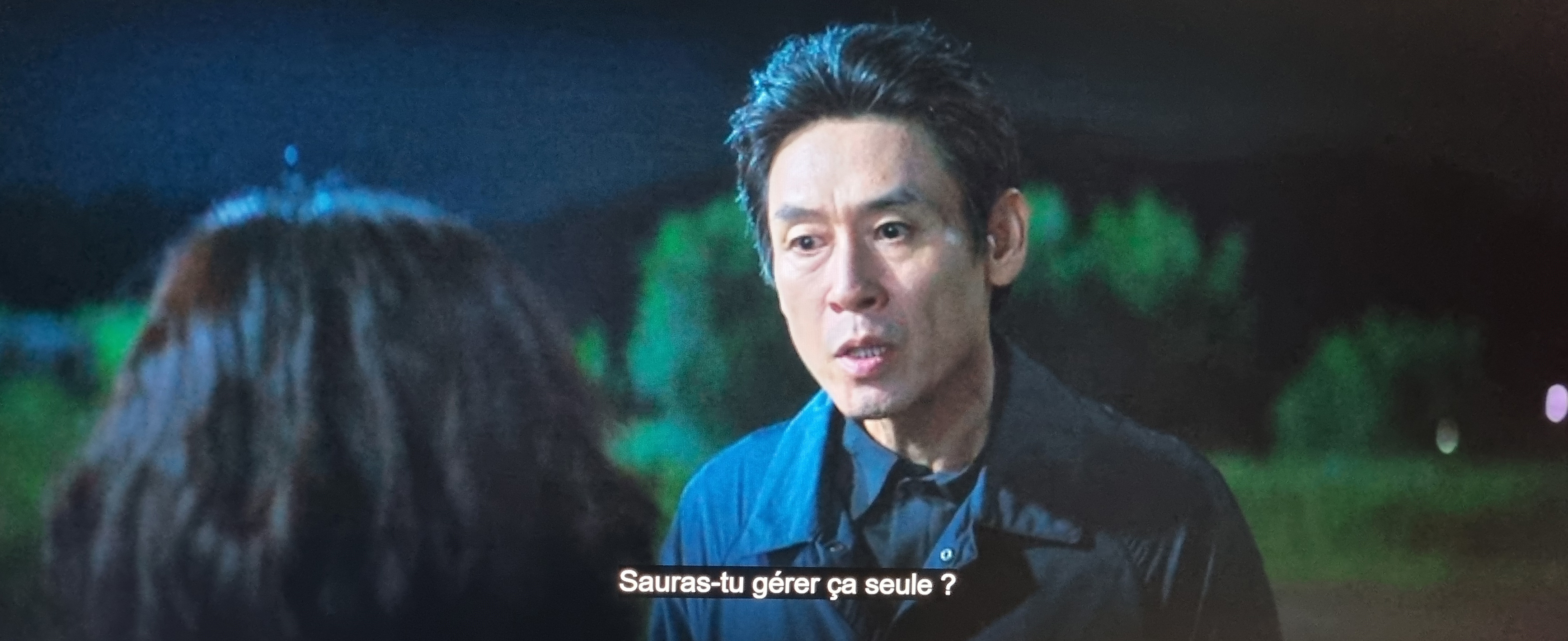 Choi Deok-hee lui dit simplement : « Tu as vu ce que moi je n’ai jamais voulu regarder. » Et elle, avec cette retenue déchirante, répond : « Vous m’avez appris à ne pas détourner les yeux. » C’est une scène qui ne joue pas la carte du spectaculaire, mais celle du poids du vécu, du silence après la tempête.